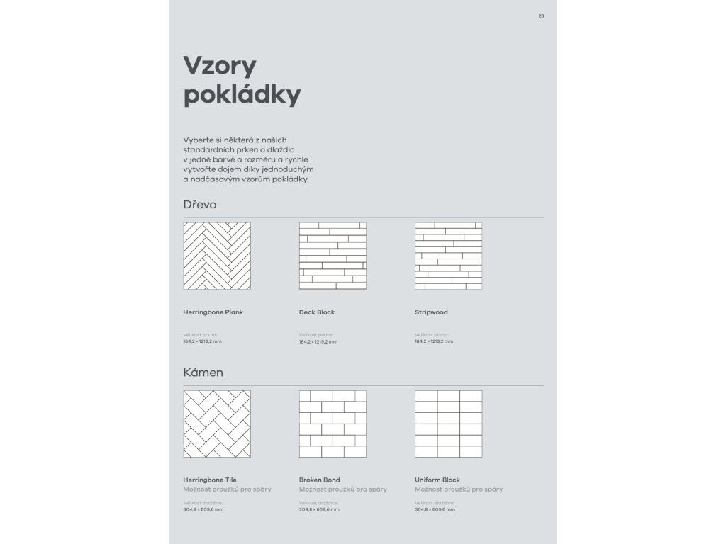 Rozměry dílců: 184 × 1219, 305 × 610 mm