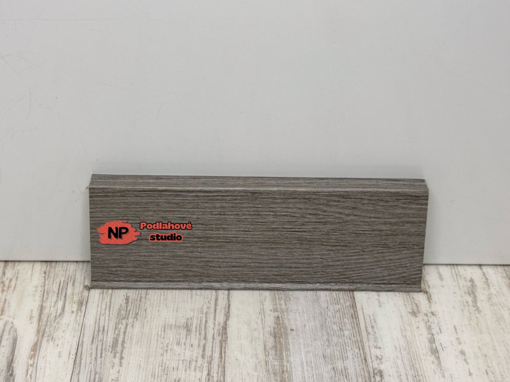 Základem lišty je pevné HDF jádro, které zajišťuje vysokou odolnost, stabilitu a dlouhou životnost. Povrch je potažen bezchlorovou polyblendovou směsí na bázi PP/TPE, která zvyšuje odolnost proti běžnému opotřebení a zároveň zachovává věrný vzhled dřevěného dekoru.