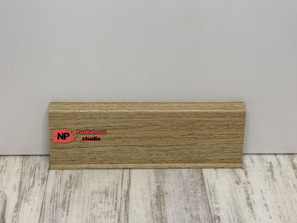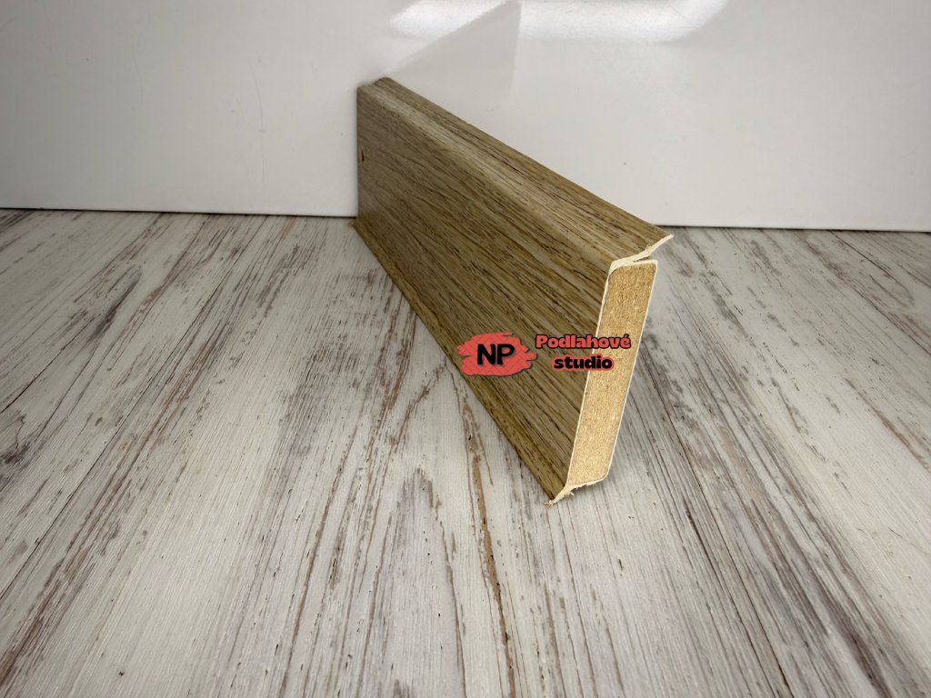 Základem lišty je pevné HDF jádro, které zajišťuje vysokou odolnost, stabilitu a dlouhou životnost. Povrch je potažen bezchlorovou polyblendovou směsí na bázi PP/TPE, která zvyšuje odolnost proti běžnému opotřebení a zároveň zachovává věrný vzhled dřevěného dekoru.